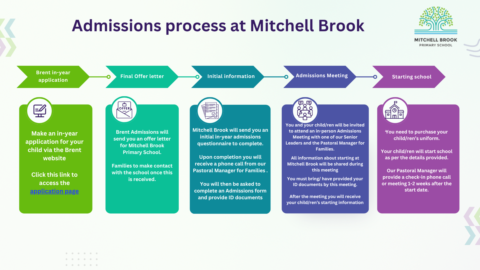 All admissions (except Nursery) are directly administered by the London Borough of Brent School Admissions Team. Please visit the website below to make an application