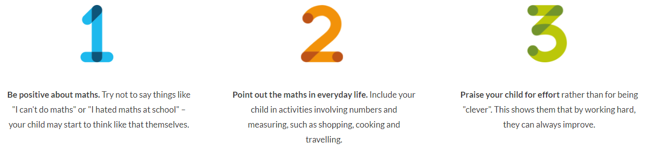 National Numeracy have a wide array of research and resources to support families with developing maths at home, with a focus on the following three key takeaways: